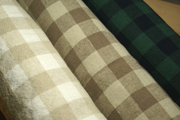 素朴な風合いの生地で、厚くもなく薄くもない生地で、 これからの季節、チュニックやワンピース、スカートやパンツにも素敵ですよ♪ 麻の混率が多いですが、チクチク感もほとんどありません。 ブロックチェックは約2.5p角です。