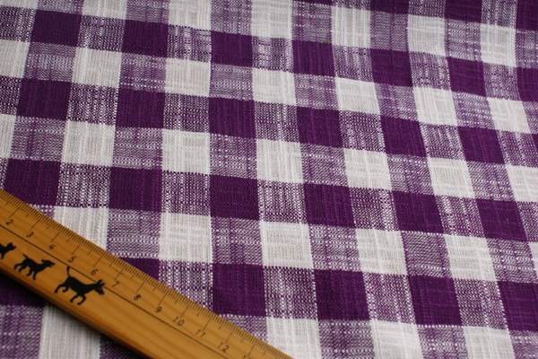 スラブコットン*ムラ染めブロックチェック*ホワイトグレープ