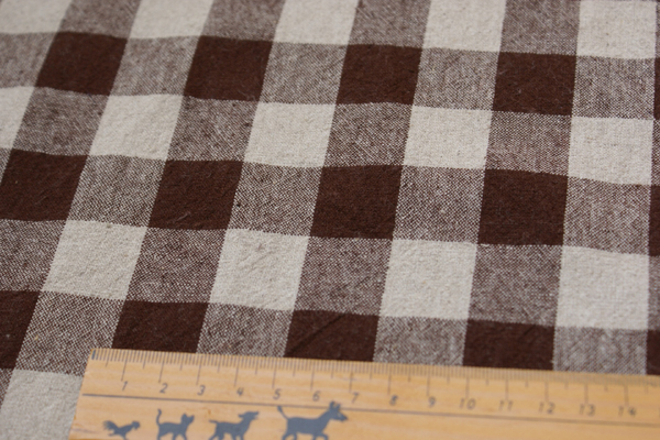 ナチュラルリネン&コットン*ブロックチェック*ブラウン