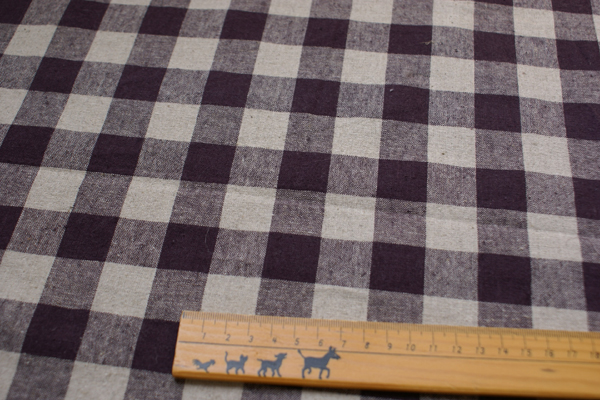 ナチュラルリネン&コットン*ブロックチェック*パープル
