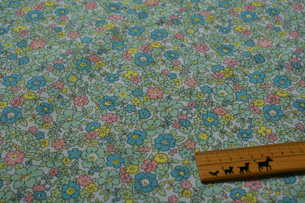 リバティ風ナイロンオックス*フラワーガーデン*グリーン