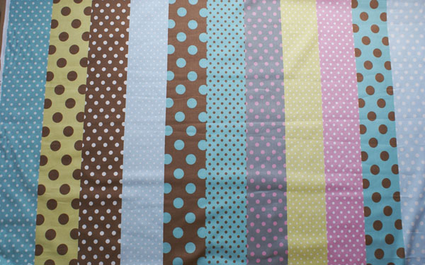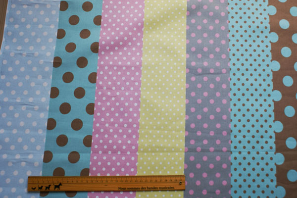 11種類のドットが組み合わさった、とてもかわいいストライプパッチです。 ドットの大きさも4mm〜2.5cmとバリエーション豊か。 一枚で何通りも楽しめて、お得感もワクワク感もバッチリです! ひと柄は約9.5cm前後で、ほぼ同じ幅のストライプです。 ギャザーを寄せて簡単パッチスカートも素敵ですね♪ 芯地を貼ってバッグにしたり、裏布にも良いですね(*^^*) 使い方次第でいろいろ楽しめますよ♪