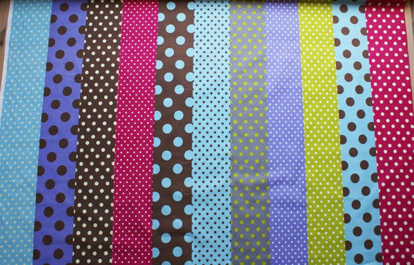 11種類のドットが組み合わさった、とてもかわいいストライプパッチです。 ドットの大きさも4mm〜2.5cmとバリエーション豊か。 一枚で何通りも楽しめて、お得感もワクワク感もバッチリです! ひと柄は約9.5cm前後で、ほぼ同じ幅のストライプです。 ギャザーを寄せて簡単パッチスカートも素敵ですね♪ 芯地を貼ってバッグにしたり、裏布にも良いですね(*^^*) 使い方次第でいろいろ楽しめますよ♪