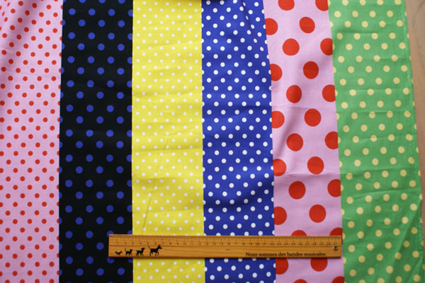 11種類のドットが組み合わさった、とてもかわいいストライプパッチです。 ドットの大きさも4mm〜2.5cmとバリエーション豊か。 一枚で何通りも楽しめて、お得感もワクワク感もバッチリです! ひと柄は約9.5cm前後で、ほぼ同じ幅のストライプです。 ギャザーを寄せて簡単パッチスカートも素敵ですね♪ 芯地を貼ってバッグにしたり、裏布にも良いですね(*^^*) 使い方次第でいろいろ楽しめますよ♪