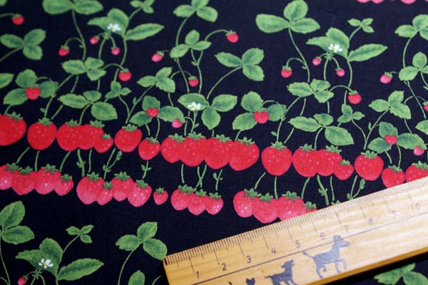 たわわに実った苺が美味しそう〜(*^^*) 約12pのボーダー柄のブロード地です。 お子さんのワンピースや流行の3段スカートにもかわいいですよ♪