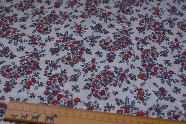 サラッとした肌触りが人気の60ローンに可愛いプリントが仲間入りです。 ローズ系のフラワーが所々ペイズリーに囲まれています。 花柄オンリーもかわいいけど、ペイズリー柄が 邪魔にならないアクセントになっていて素敵です(*^^*) 大人服にもお子さんのお洋服にもかわいいですよ♪