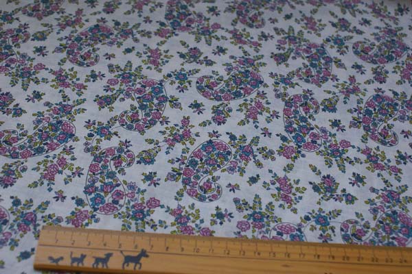 サラッとした肌触りが人気の60ローンに可愛いプリントが仲間入りです。 ローズ系のフラワーが所々ペイズリーに囲まれています。 花柄オンリーもかわいいけど、ペイズリー柄が 邪魔にならないアクセントになっていて素敵です(*^^*) 大人服にもお子さんのお洋服にもかわいいですよ♪