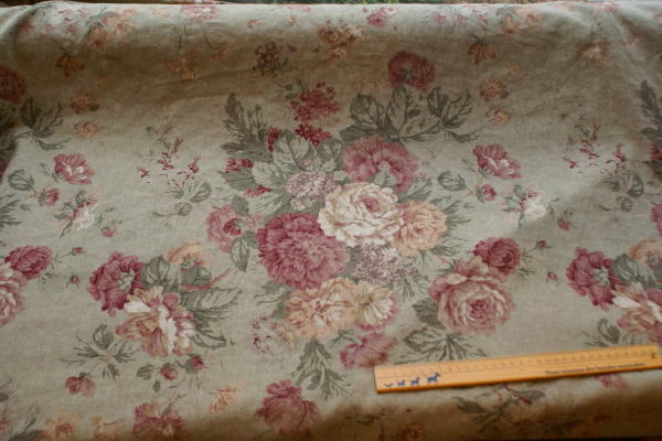 地色はグリーン系の落ち着いた色合いで、 シックで上品なとても素敵な柄です エアータンブラー加工されており、柔らかな風合いです。 インテリアやスカート等のウェアーやバッグも素敵ですね。 生地幅もたっぷりあり、お得感もいっぱいです。