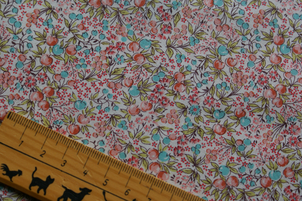 小さな実をいっぱいつけた、かわいくて上品なフラワープリントです。 チュニックやブラウス等のお洋服作りはもちろん、 バッグや小物類の布雑貨やバイアステープにも素敵です。