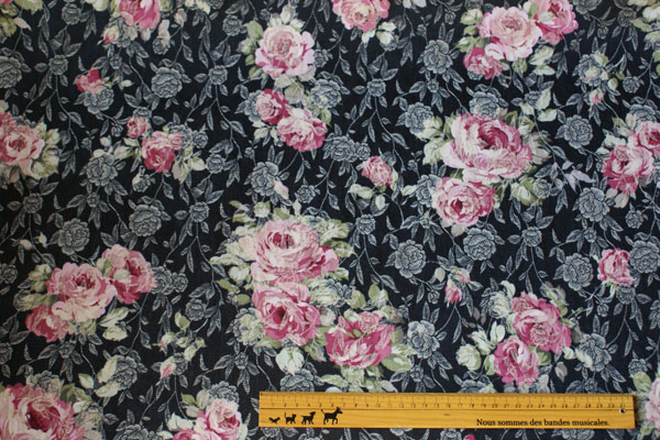薔薇模様のジャガード織と薔薇のプリントが素敵な生地です。 リネンが入っていますが、チクチク感もなく ワンピースやスカート等のお洋服にもピッタリです。 パッチワークやバッグ、ポーチ等の布小物にも素敵です。 フレアースカートを作ってみました(画像あり)
