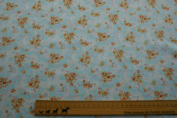 ローズとペイズリーの組み合わせが素敵かわいい生地です。 かわいい生地は眺めているだけで、ウキウキしちゃいます〜
