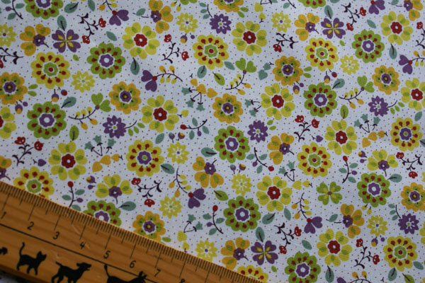 コロンとした、まあるいキュートなお花と小さなドットが とってもかわいいプリント生地です。