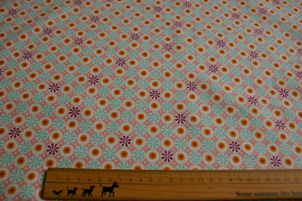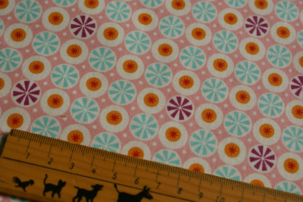 コロンとしたキャンディーのようなレトロチックなプリントです。 布小物やチュニックやブラウスのお洋服にもかわいいですね♪ クッションカバーやカーテンにも♪