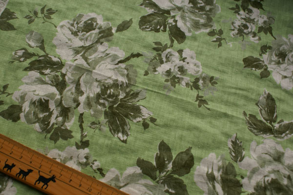 YUWA*リネン100%*ローズ*グリーン*こうの早苗