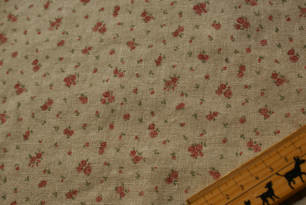 リネンカラーのザックリとした綿麻の生地に約1pの プチローズブーケがプリントされた、ナチュラル&かわいい生地です。 柄域も使い易い大きさで、ウェアーや布雑貨等、幅広く使って頂けます。