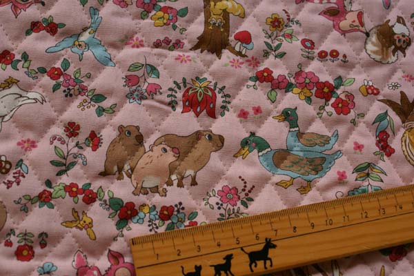レトロちっくなイラストが可愛すぎず、お子様にはもちろん 大人にもバッチリなデザインです。 ピンクをキルティング加工してみました。 入園入学準備にいかがですか〜
