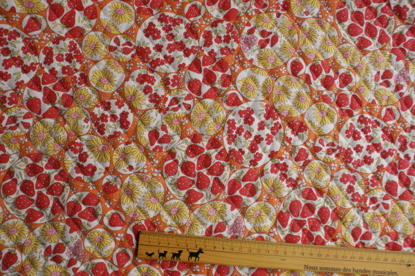 YUWA綿麻スラブ*ストロベリーガーデン*オレンジ のキルティングです。 入園入学にいかがですか。