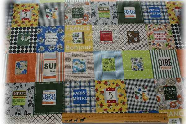 小関鈴子さんデザインのパッチワーク生地です。 四角は約10×10cm、ワンリピートは60cmですが 柄あわせをしてのカットは出来ませんので、 柄の途中でのカットになります。