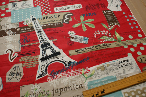 小関鈴子さんデザインのおしゃれなエッフェル塔のプリントです。 生地はシャーティングになります。 パッチワークや布雑貨にどうぞ♪