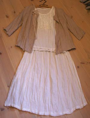 キャミ、スカートにリネンダブルガーゼで作ったカーディガンです。 |
