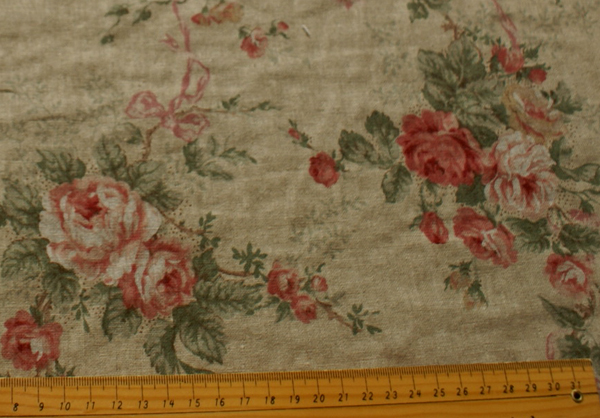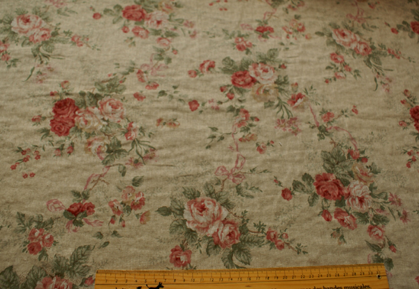 生成りの地色に薔薇のブーケがプリントされた素敵な生地です。 エアータンブラー加工されており、柔らかな風合いで チクチク感もほとんどない上質のリネンです。 厚みは中厚程度の厚さです。 ウェアーや布雑貨やインテリア等いろいろ活用してくださいね。