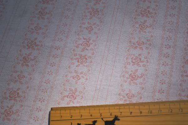 レース柄がボーダー状にプリントされたやや薄手のキャンパス地です。 可愛さの中に上品さもあり、使いやすい生地です。