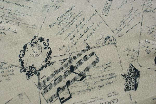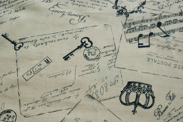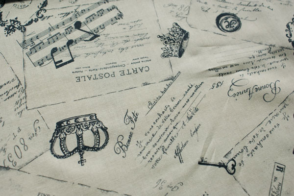 クラシカルなアンティーク感いっぱいのおしゃれな生地です。 やや薄手のシャーティング生地ですので、縫いやすく使い勝手もGood! 布小物にはもちろん、インテリアやバッグの中袋に使うと素敵♪