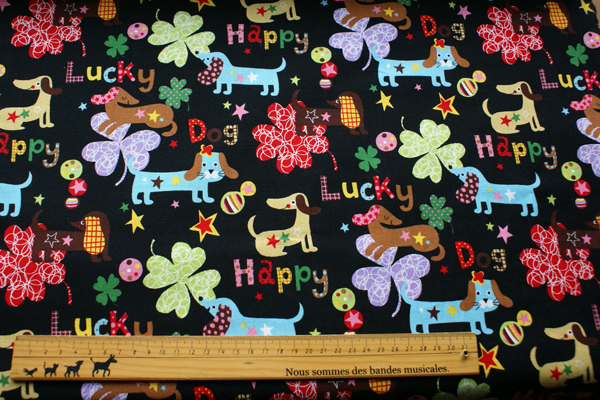 カラフルでキュートなわんちゃん達がプリントされたキャンパス地です。 バッグや小物等の布雑貨、わんちゃんグッズにもかわいいですよ♪