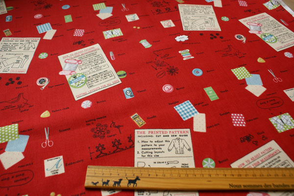 ちくちく好きさんには、たまらないモチーフがいっぱい詰め込まれた シーチング生地です。 お気に入りのモチーフをアップリケにしてもかわいいですよ♪