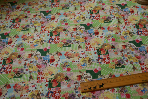 ちっちゃくてかわいい雑貨や切手がコラージュパッチされた おしゃれでキュートな生地です。 モチーフ使いにもかわいいですね♪ 眺めているだけでも幸せな気分になれますよ〜