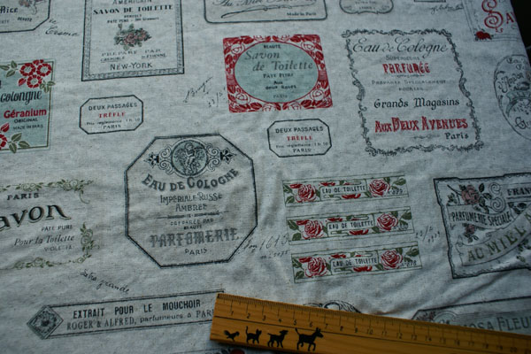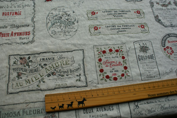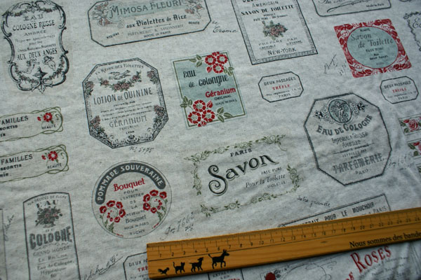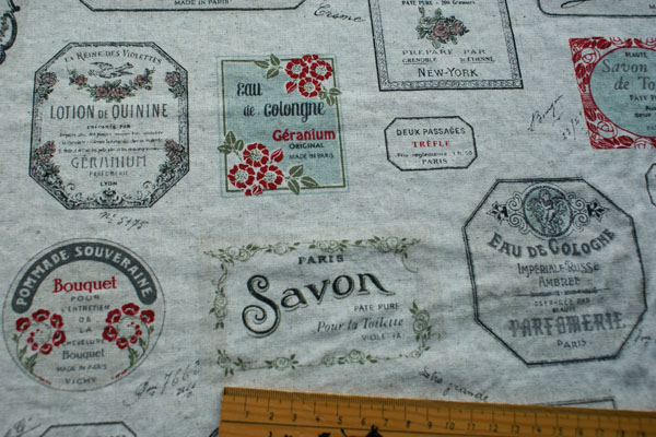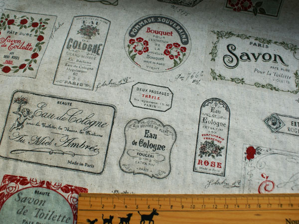 フランスの色々な石鹸ラベルがプリントされた ヨーロッパを感じさせるおしゃれな生地です。 ざっくりとした綿麻生地ですが、エアータンブラー加工 されていますので柔らかな良い風合いです。 どのラベルも素敵なので、裏に接着芯を貼って ワッペンとしても使ってもおしゃれ♪ バッグやポーチ等の布雑貨やクッション等のインテリアにもピッタリ!