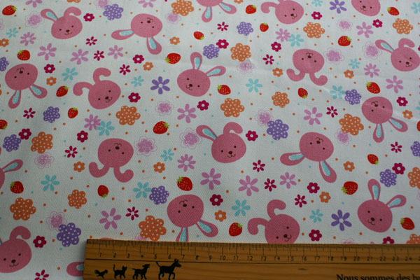 ラブリーなうさぎさんにお花とフルーツがプリントされたオックス生地が仲間入り♪ 厚すぎず、薄すぎず程よい厚みのオックス生地ですので バッグや巾着等の袋物にピッタリ! 入園入学準備にもお勧めです(*^^*)