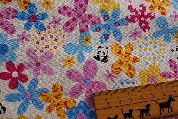 パンダ&フラワーガーデン*オフホワイト*CBポプリン