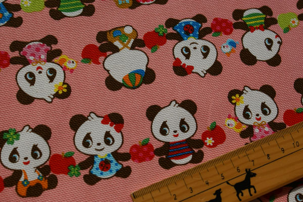 かわいいパンダちゃんが仲良く手をつないでます〜(〃▽〃)ポッ 眺めているだけでhappyな気持ちになれますね♪ 生地は厚手のしっかりした10番オックスなので バッグやポーチ等の布雑貨にピッタリです。 お子さんの入園入学グッズにもかわいいですね!