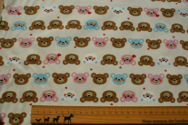 とってもかわいいオックス生地が仲間入り〜♪ にっこりクマちゃんがお行儀よく並んでます(*^^*) バッグや布小物、何に仕立ててもかわいいですね! エプロン、クッション等のカバーリングにもgood 入園入学グッズに良いですね♪