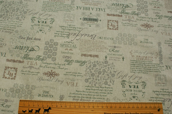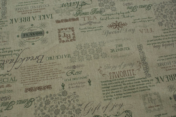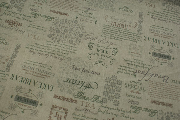 とてもおしゃれな英字ロゴの綿麻プリントが仲間入り〜♪ おしゃれな紅茶のラベルにも使われていそうなロゴがたくさん♪ しっかりしたキャンパス地ですので、バッグやポーチ等の布小物や クッションカバー等のインテリア、エプロンにも素敵。 バッグの裏地にしても素敵ですね。