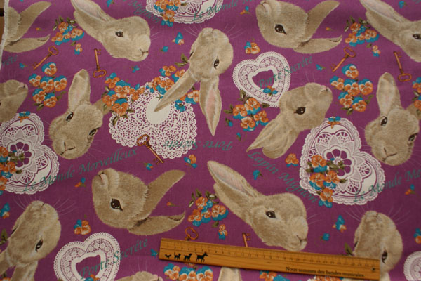 リネン&コットン*レーシー ラパン*パープル*うさぎ