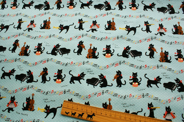 かわいい黒ねこちゃんのコンサート。 かわいい音色が聞こえてきそうですね♪ ねこちゃん好きにはたまりませんね! バッグやポーチ等の布小物はもちろん クッションカバー等のインテリアにも良いですよ(*^^*)