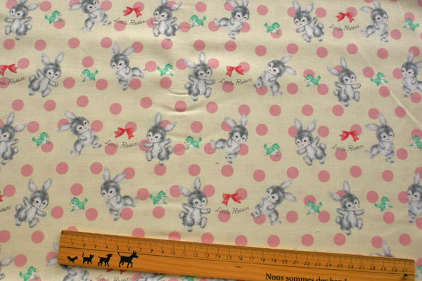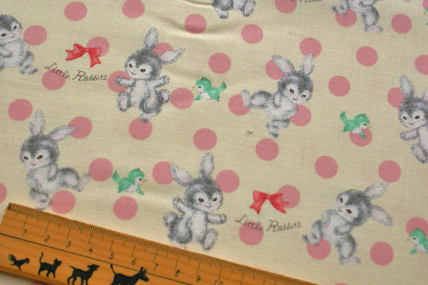 うさぎ好きにはたまらないプリント生地が仲間入り♪ 外国の絵本に出てきそうな優しい雰囲気のうさぎさんが とってもキュートで癒されます〜。 生地はシーチングなので、キルト綿や芯地を貼ってバッグにしたり お子さんのワンピやスカート等のお洋服やエプロンにもかわいいですね♪ ※ご希望の方に画像のバッグのレシピをプレゼント♪ ご希望の方は備考欄に記載ください。 記載がない場合はレシピはお付けしていません。 服のレシピはありません。