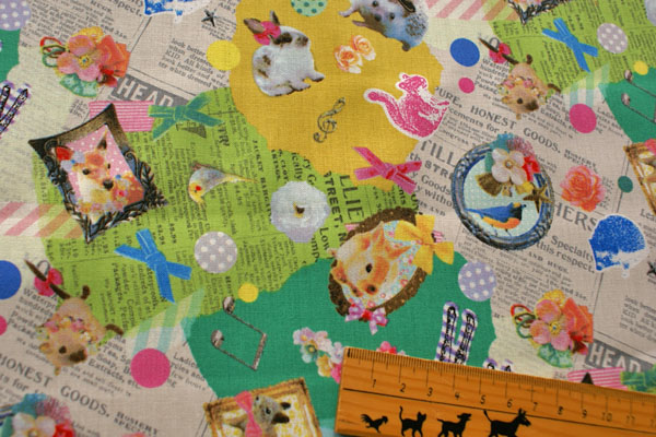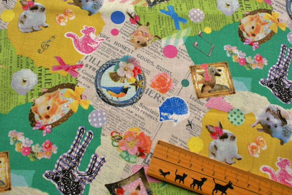 大好きなうさちゃんにハリネズミ、シカ等 かわいいモチーフがコラージュされた生地です。 眺めているだけで、テンションが上がってきますね〜♪ 生地は扱いやすい、シーチング生地です。 お子さんのスモック、体操服入れやコップ入れ等の入園入学グッズにピッタリです。 芯地を貼ってバッグにもかわいいですね。