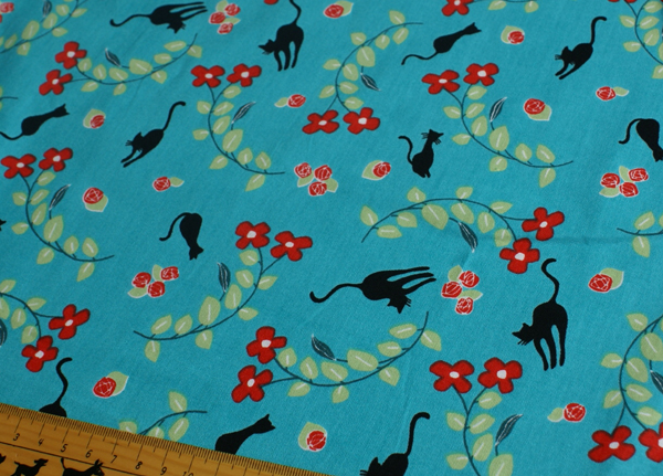どこか懐かしいにおいのする生地です。 シャドウ風にプリントされた猫ちゃんがまた良い感じ♪ 和調にも使えそうですね!