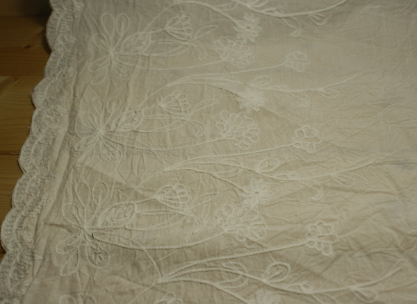方みみ、約27p部分に、チェーンステッチ風のお花模様の刺繍が施されています。 手もみ天日干しで、とてもいい風合いです(*^^*)