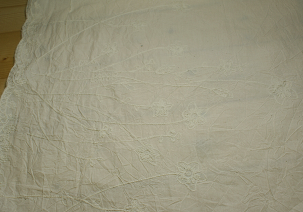 方みみ、約37p部分に、チェーンステッチ風のお花模様の刺繍が施されています。 手もみ天日干しで、とてもいい風合いです(*^^*)