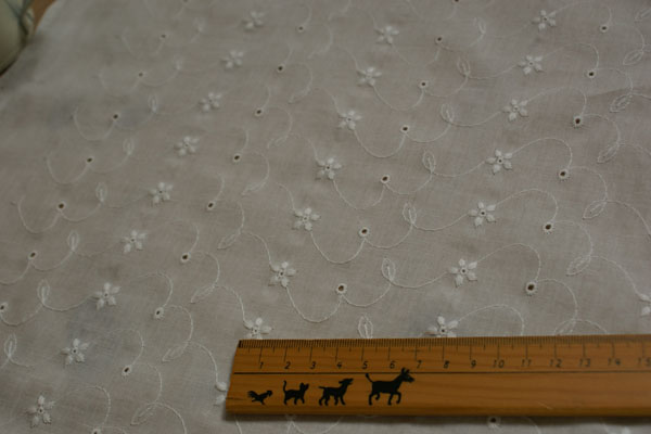 UVカット加工された、とてもお値打ちな綿レースです。 ブラウスやチュニック等、この夏大活躍間違いなしですよ♪ 薄手で透け感があります。