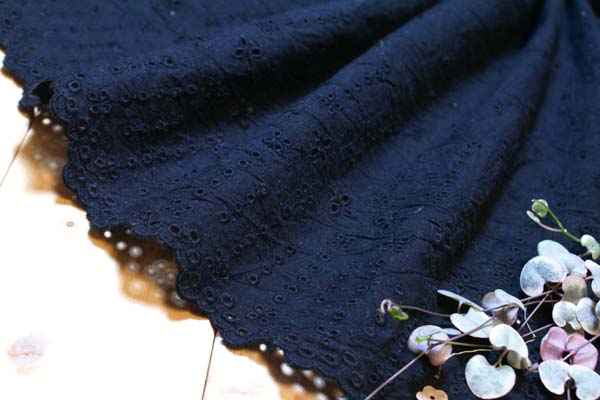 スカラップワッシャー綿レース*ブラック