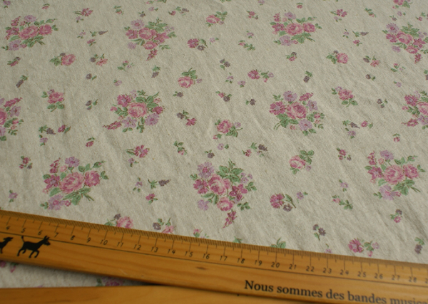 YUWA綿麻スラブ*フラワーローズブーケ*ピンク