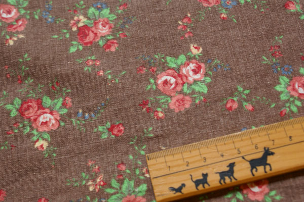 YUWA綿麻スラブ*キャス風ローズブーケ*ブラウン