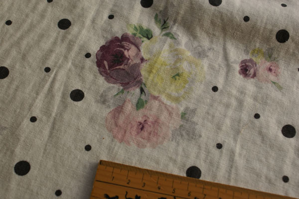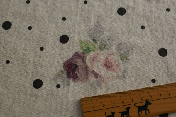 くったり柔らかな風合いのローズ柄の素敵な綿麻スラブが仲間入り♪ 大小いろんなドットやローズブーケがちりばめられた かわいくて素敵な生地です。 エアータンブラー加工されていますので、クッタリ柔らかな風合いで お洋服はもちろん、バッグ等の布小物、クッション等の インテリアにも大活躍してくれますよ♪ こちらの生地は国内で生産加工されています。