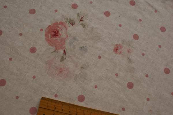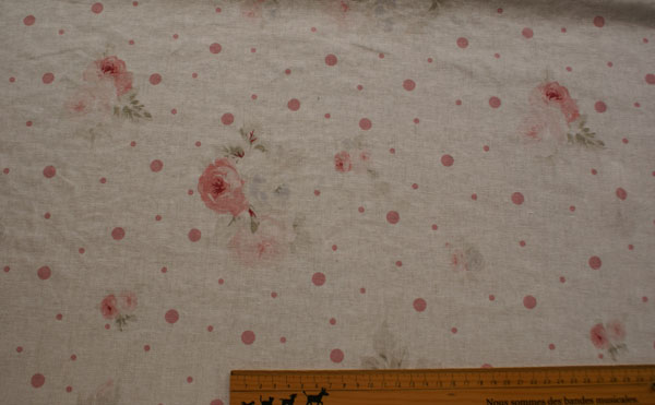 YUWA*綿麻スラブ*ドット&ローズブーケ*ピンク