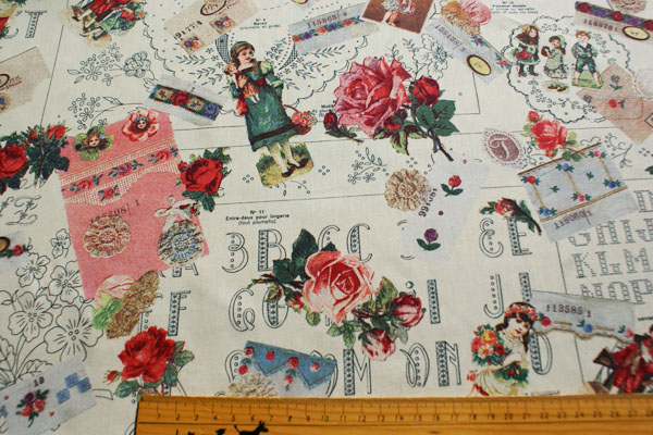 園部美智子さんデザイン、Micci Collection ヴィクトリアンコラージュ柄の登場です。 アンティークな雰囲気がたっぷりな柄がコラージュされた どこをとっても素敵な柄です。 眺めているだけでも幸せな気分になれそうです(*^^*) 生地は薄手ですが、上質な60ローンです。 パッチワークやお洋服にしても素敵です。 アンティークな雰囲気の素敵な作品ができますね♪